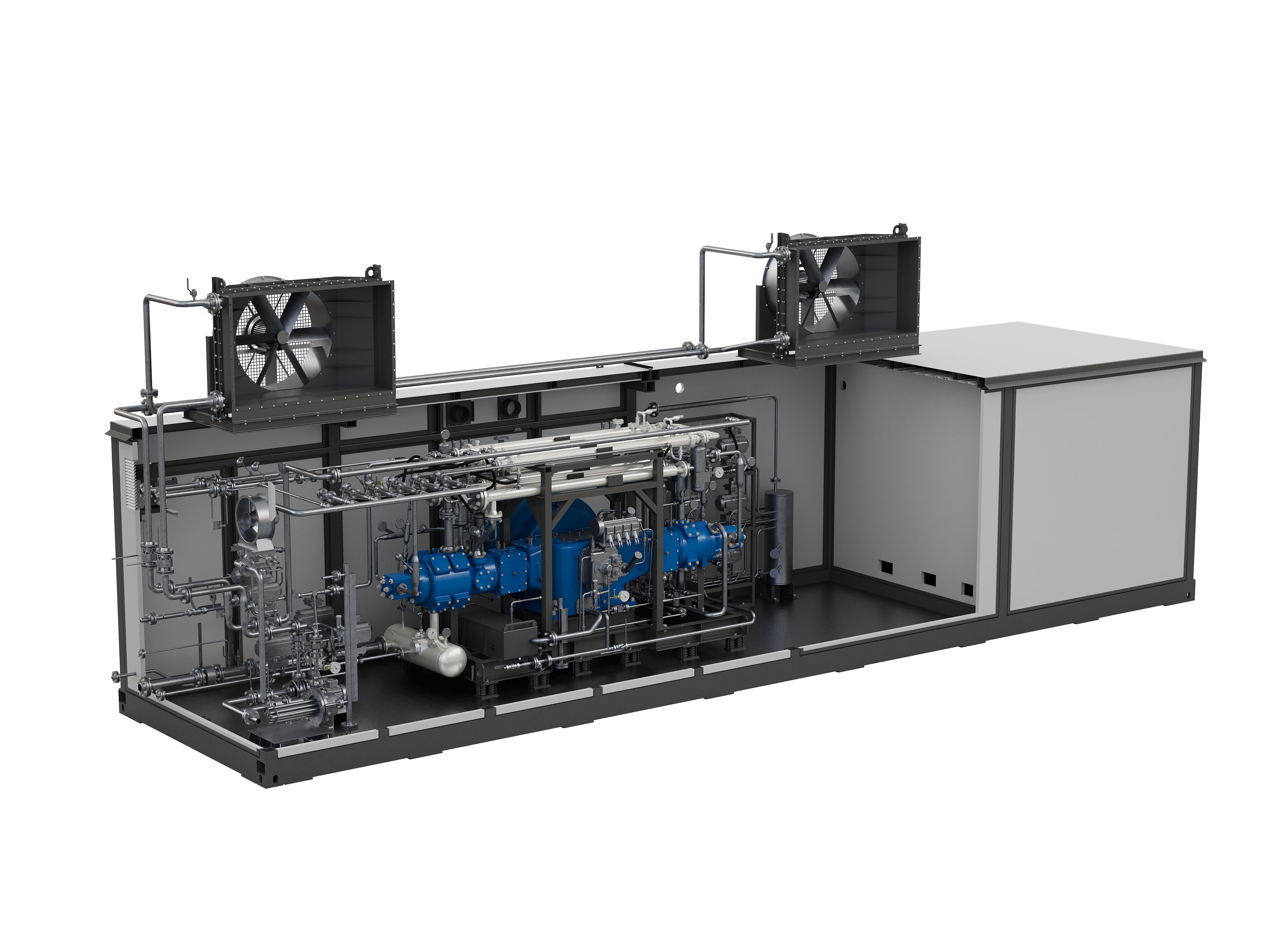 Компактность - конструктивное исполнение в габаритах стандартных морских контейнеров позволяет сделать станцию максимально компактной, избавив заказчика от необходимости поиска больших площадей для нового оборудования.